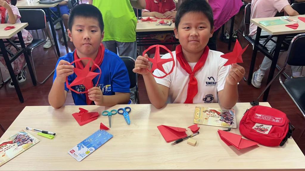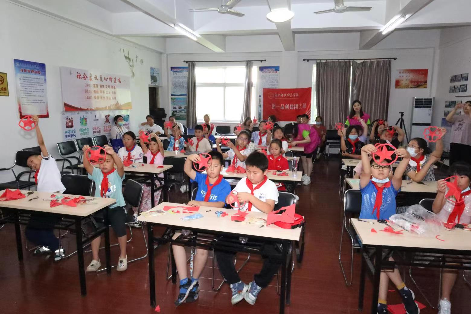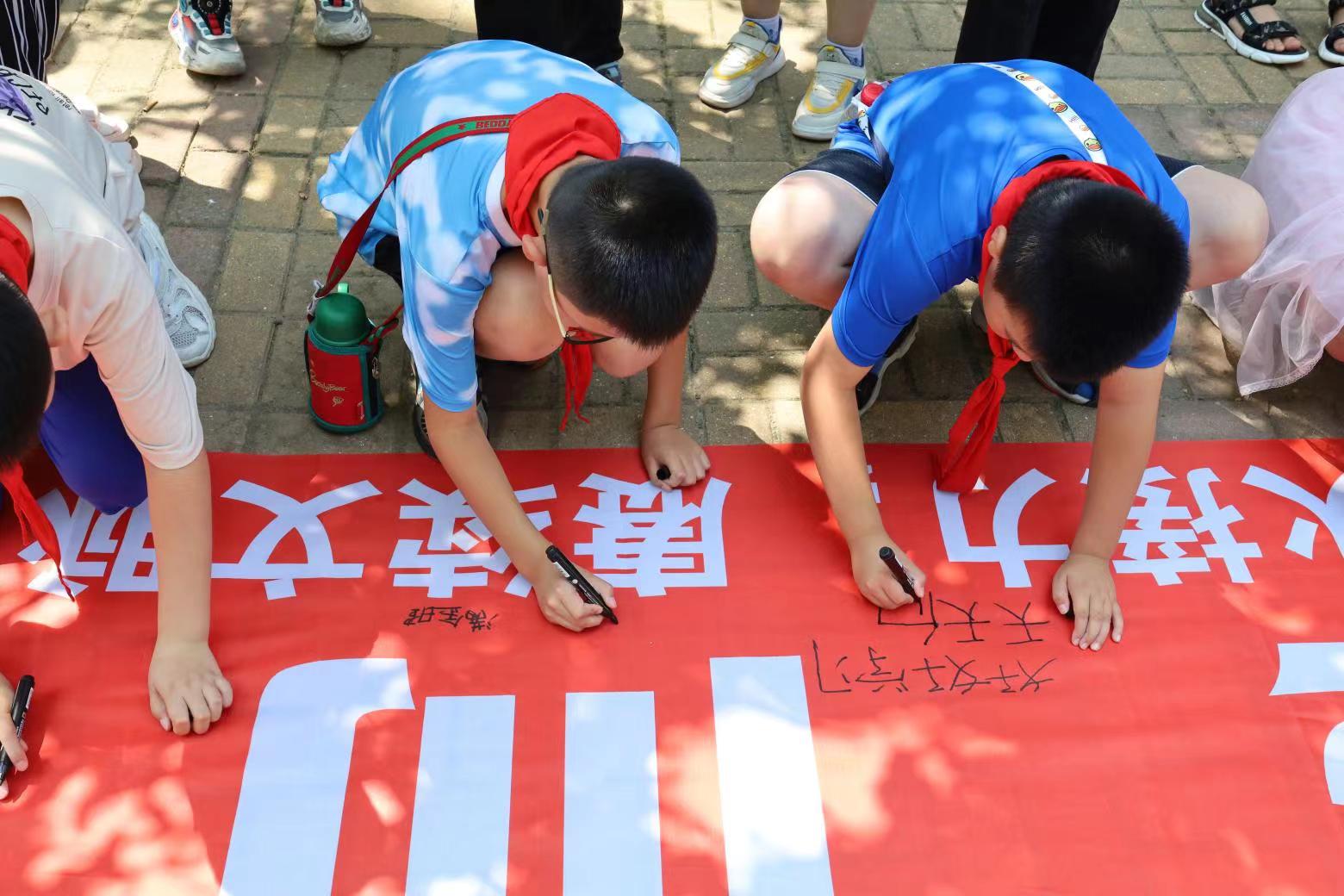 到达社会实践地点后,“星火接力,赓续文脉”社会实践团的成员们热情满怀,与社区中小学生及居民打成一片,开展了以影片《闪闪的红星》为主线的社会实践活动,旨在弘扬优秀传统文化,传递红色精神,厚植家国情怀,激发大家爱党爱国的热情,传承爱国基因。活动伊始,通过展播精选的视频,让同学们了解到英雄人物---潘冬子背后的感人故事,吸引了众多中小学生及居民的参与互动。随后,小分队成员组织了一场“闪闪红星传万家”的宣讲会。实践团的成员声情并茂地讲解了潘冬子的英勇事迹,让现场观众深受感动。《闪闪的红星》影片中潘冬子以“红星”为精神寄托,作为故事的线索贯穿剧情;队员们以教唱红色歌曲《闪闪的红星》和剪纸---“红星”的特殊形式,来表达中小学生对党的忠心与热爱。宣讲会现场,同学们认真聆听,积极互动,纷纷表示要从自身做起,做好红色基因的传承人;之后,同学们在“为中华之崛起而读书”条幅上签名,写下了自己的美好心愿。