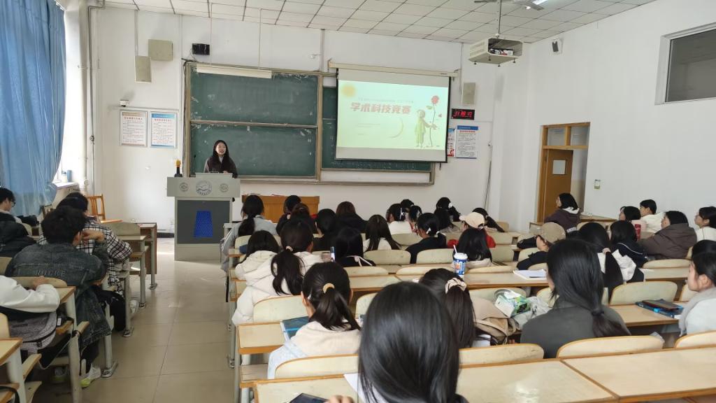 会上,赵紫诺以“砥砺精进 创新致远”为主题,系统分享了竞赛收获、类别及备赛策略。她带领同学们观看答辩视频,体验竞赛答辩场景;随后,她结合具体案例,深入讲解选题技巧、策划书撰写细节,着重强调 PPT 与策划书的差异,鼓励同学们勇敢尝试,丰富个人经历。答疑环节中,同学们踊跃提问,赵紫诺耐心细致地逐一解答。最后,辅导员总结学科竞赛要点,鼓励同学们要积极参与,并表达了对大家在竞赛中斩获佳绩的美好期许。