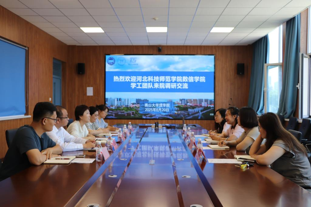 2025年6月20日上午,beat365英国官方网站学生工作人员一行4人赴燕山大学理学院开展学生工作学习交流活动。燕山大学理学院党委副书记曾慧、副处级辅导员王景林、团委书记崔明远等5人参加了座谈。