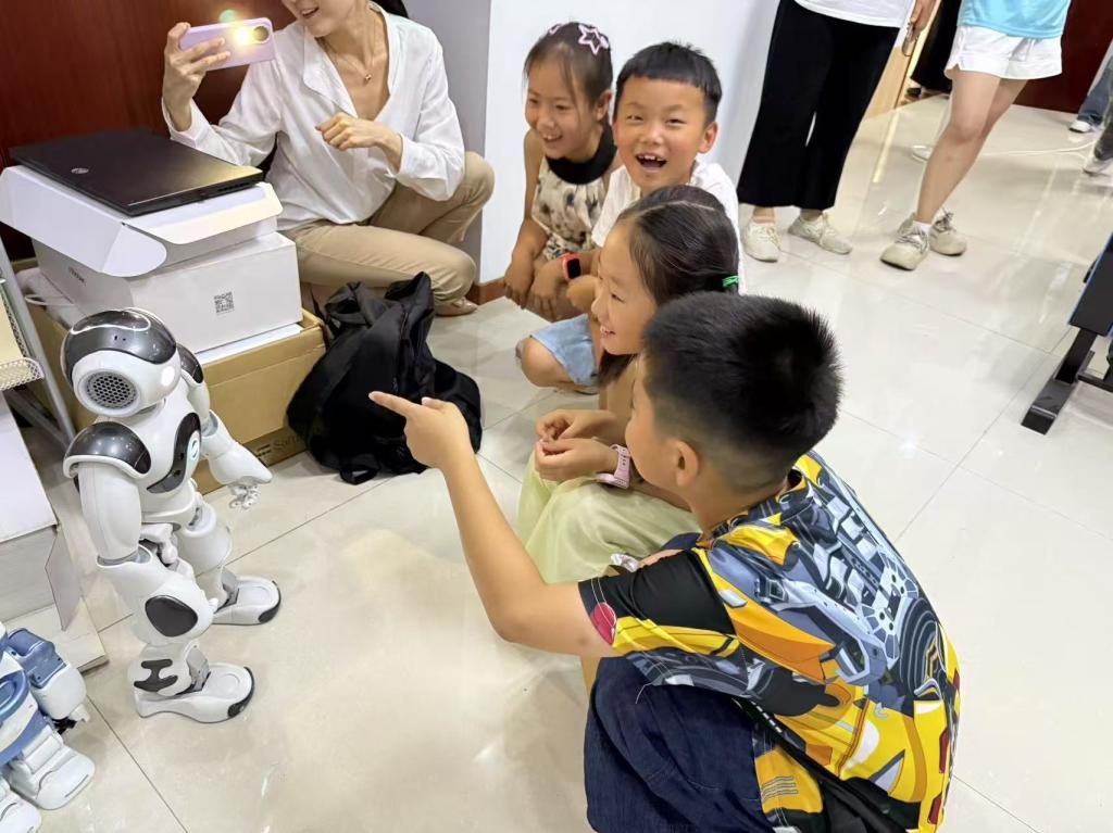 7月7日,beat365英国官方网站“AI梦启·智创未来”暑期社会实践团,在秦皇岛市海港区在水一方社区开展“智绘万象 程控未来”科普活动,带领社区小学生探索机器人科技。