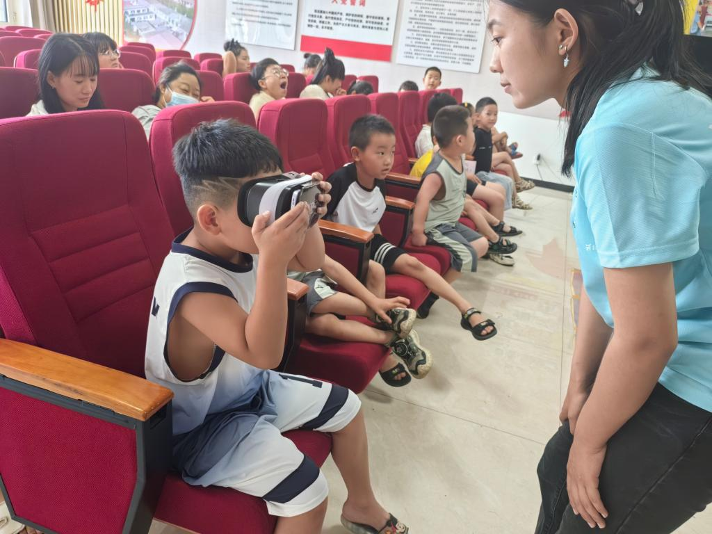 孩子们戴上VR 设备体验从浸种催芽到金秋收割的完整农事历程