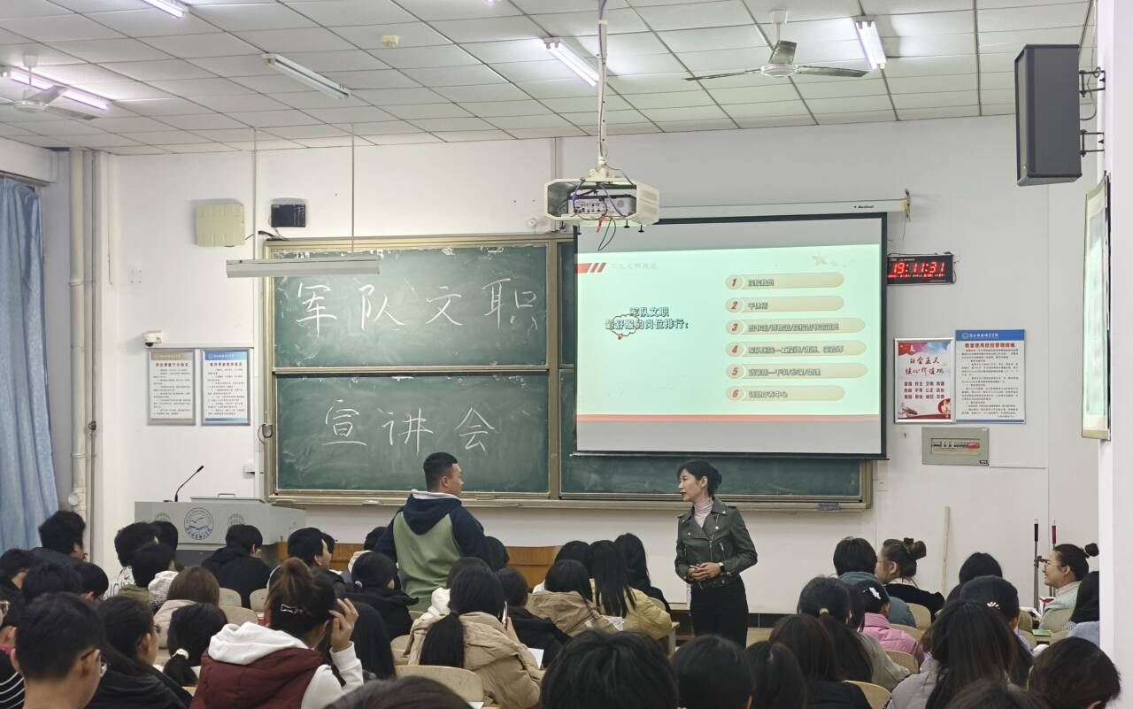 为了让同学们对军队文职人员岗位有更加深入的了解和体会,2024年11月21日数信学院邀请了专家在逸夫楼A103开展军队文职宣讲会。