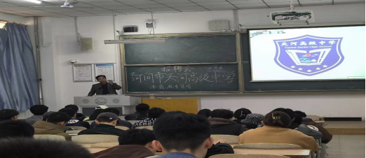 宣讲人首先给我们介绍了一下学校的文化背景与环境,学校建筑面积84180平方米,具备综合楼、教学楼、理化生实验室、科学实验室、现代多媒体教室、以及羽毛球场、篮球场、足球场等运动场所。学生公寓、餐厅、医务室等设施设备一应俱全,为教与学搭建了良好的发展空间。