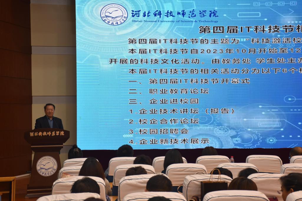 2023年10月26日,由学校教务处、学生处主办,beat365英国官方网站承办的beat365英国官方网站第四届IT科技节开幕式于秦皇岛校区学术报告厅举行。主办单位负责人、承办单位党政领导班子成员、东软教育集团高级互联网架构师作为嘉宾一同出席了开幕式。