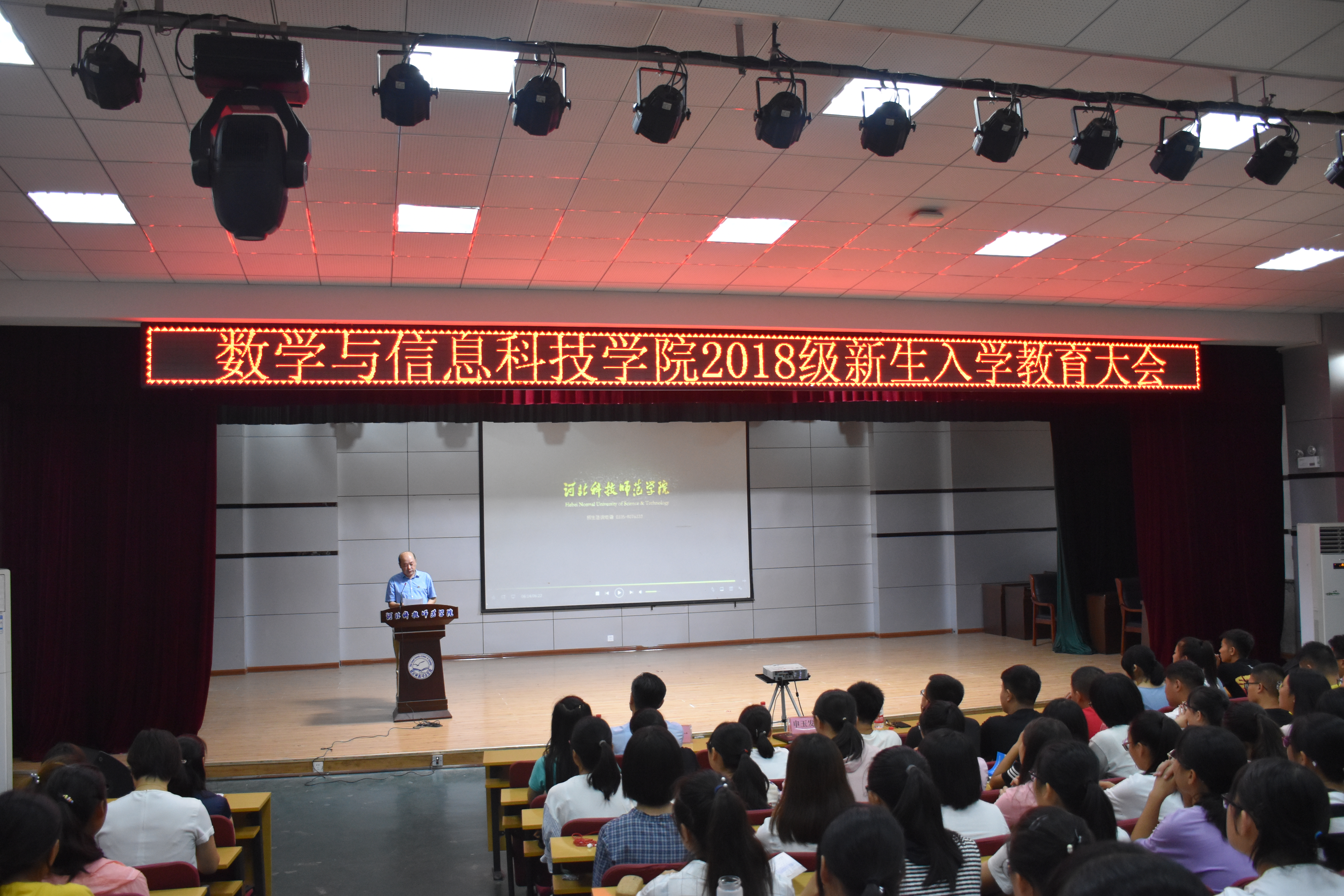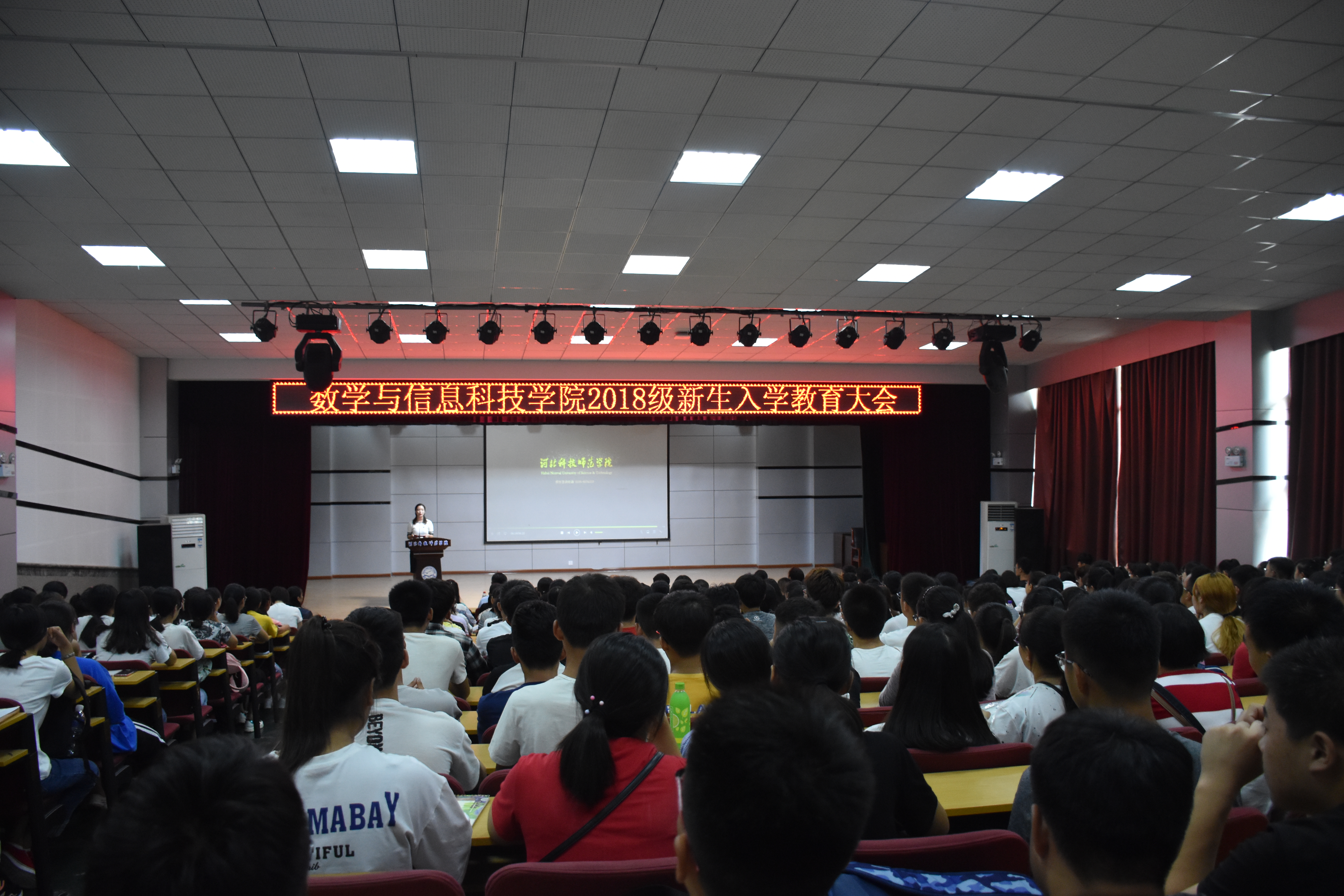 大会开始,与会师生全体起立,奏唱中华人民共和国国歌。接下来,学院行政负责人致辞,对数信学院2018级新生的到来表示热烈的欢迎,并从学院历史沿革、专业设置、办学特色、教学科研、师资力量、学生管理、实验实训保障和教学科研基地建设等方面向新生作了简要介绍,同时从新生“尽快实现从中学到大学的角色转变”、“尽快确立一个目标”、“养成利用学校各种智力和环境资源的习惯”、“树立集体意识,培育班级文化”等方面提出了四点希望和要求。最后学院党委负责人在讲话中希望数信学院2018级新生要高举习近平新时代中国特色社会主义思想伟大旗帜,要牢记习近平总书记“爱国、励志、求真、力行”的嘱托,要学会运用马克思主义立场观点方法观察世界、分析世界,为自己探索求学之路、成长成才之路打下科学思想基础。要大力发扬“敏学修身 乐业创新”校训精神,积极参与支持班团工作,积极靠近党组织,做一个理想信念坚定、科学求真、严谨务实、自强、自立、自信的人。