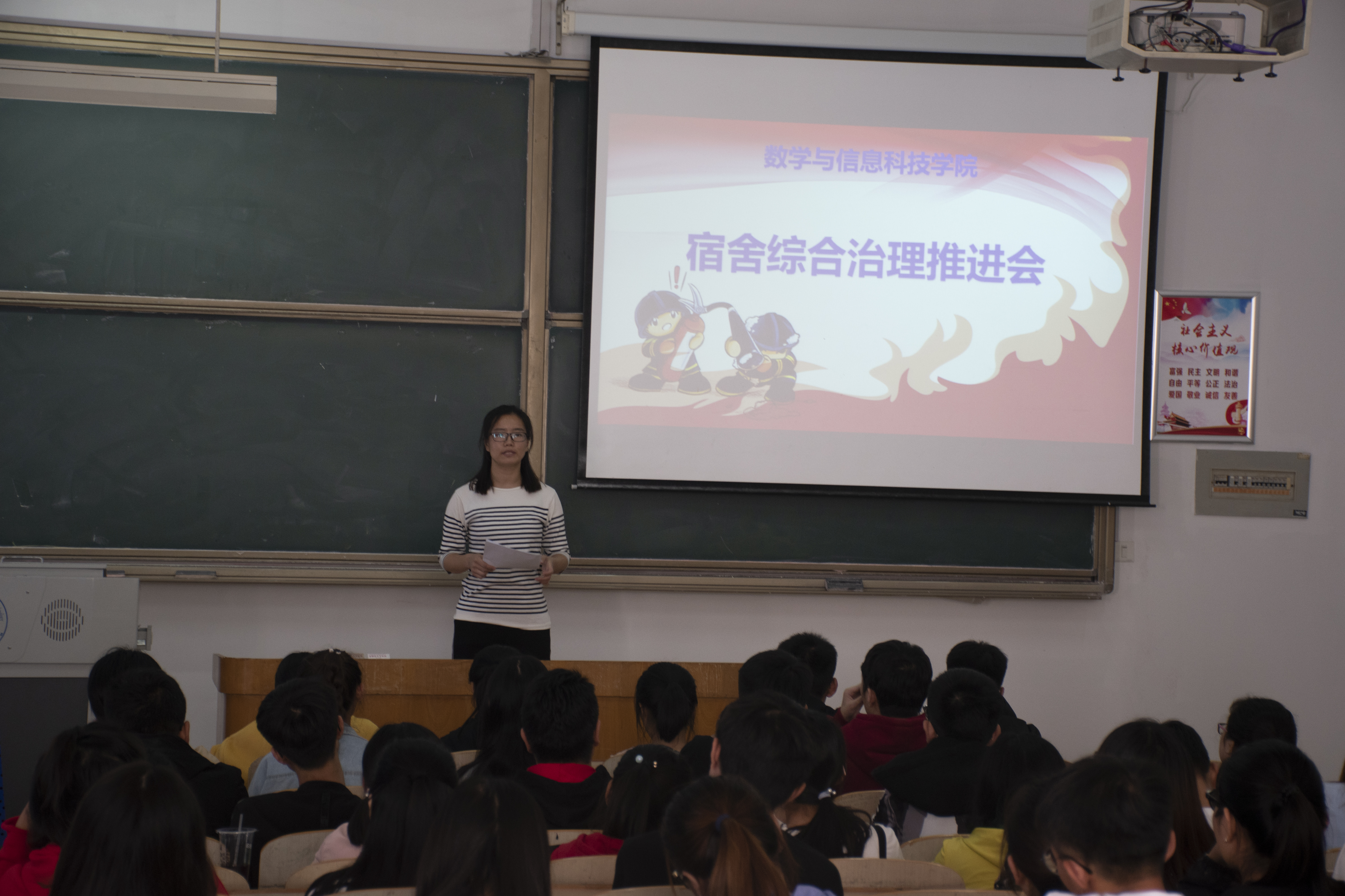 为贯彻落实学校党委学工部、安全工作处、大学生服务中心工作部署,进一步加强宿舍综合治理及信息管理工作,提升学生安全意识,提高学生自我管理能力。2018年9月28日,beat365英国官方网站在秦皇岛校区逸夫楼A103召开了宿舍综合治理推进会,数信学院学工办老师、班主任、各班级生活委员参加会议。