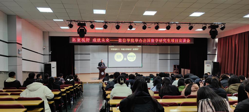 为激发学生的学术潜力,满足学生出国(境)深造的需求,3月21日下午,数信学院在多功能厅举办出国留学项目介绍宣讲会。会议邀请留学规划师郭亮博士担任主讲人,数信学院全体辅导员,2024届、2025届本科毕业生参加会议。