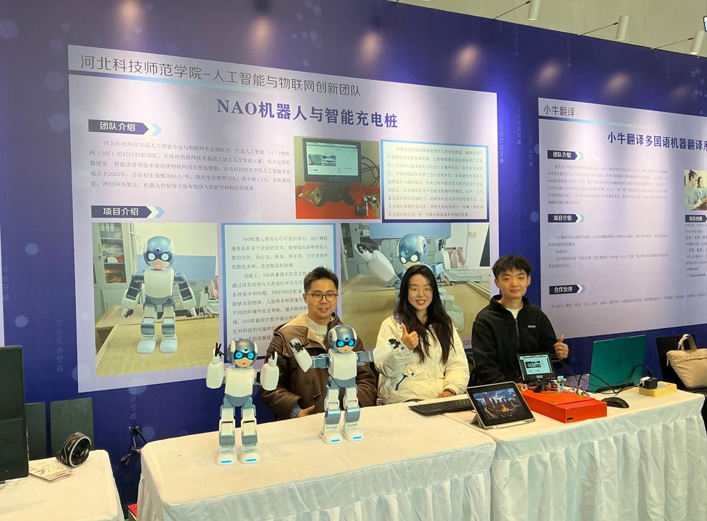 数信学院人工智能创新团队展出的智能充电桩项目和NAO机器人,成为全场瞩目的焦点。团队自主设计的智能充电桩项目针对电动汽车充电过程中存在的诸多痛点,如充电车位被燃油车占用、充电安全隐患等,提出了一种基于人工智能与物联网技术的创新解决方案。许多新能源车主在深入了解该项目后,与团队成员展开了深入而细致的讨论并提出了项目进一步研究的建议。未来,创新团队将续优化智能充电桩项目,将人工智能算法与物联网硬件相结合,并将项目经验用于实践教学环节,提高创新应用型人才培养能力。