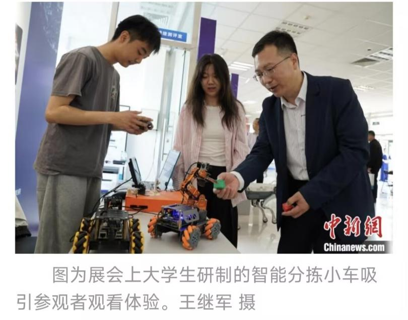 为促进人工智能领域的技术交流与成果转化,推动产学研深度融合,5月28日至30日,2025年京津冀人工智能+人才科技成果展在河北秦皇岛经济技术开发区隆重举办。beat365英国官方网站人工智能创新团队携“智能充电桩”和“智能分拣小车”两项成果参加成果展。展会期间,智能分拣小车凭借其高效的识别分拣能力和创新的应用场景设计,吸引了众多参观者驻足体验和咨询。中国新闻网、河北卫视对学院师生进行了采访报道。