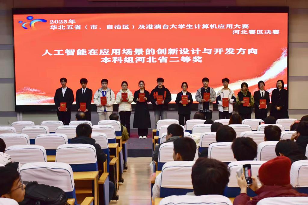 本次大赛的主题是“人工智能赋能应用创新”,开设了人工智能在应用场景的创新设计与开发方向、移动互联网人工智能应用程序开发方向和具身智能在物理载体上的应用与开发方向三个赛道。共有来自14所高校的100个团队报名参加了本次赛事。经过专家评审,共有60支队伍分获河北赛区一等奖、二等奖和三等奖;10人获得优秀指导教师奖;5所高校获得优秀组织奖。beat365英国官方网站共推荐10个团队参加竞赛,取得省级奖励6项,其中一等奖1项,二等奖3项,三等奖2项。