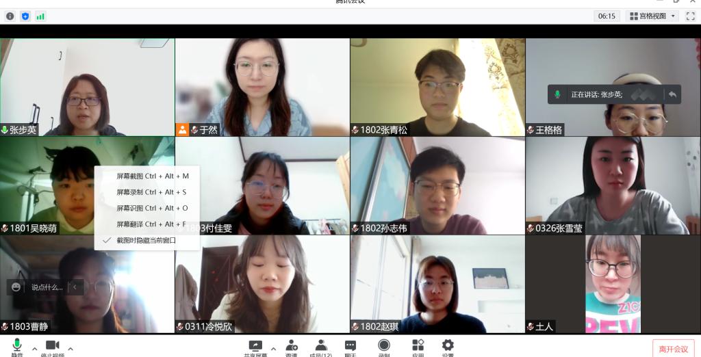 线上答辩通过腾讯会议进行,提前成立了由18名毕业论文指导教师组成的9个答辩小组,并对答辩各个环节进行了明确要求。每位学生事先制作PPT通过屏幕共享陈述时间为5分钟,陈述完毕后由评委老师提问或者提出修改建议和意见。此次毕业论文开题报告的问题主要集中在论文题目过于宽泛、研究内容不够明确具体,创新点不够突出。