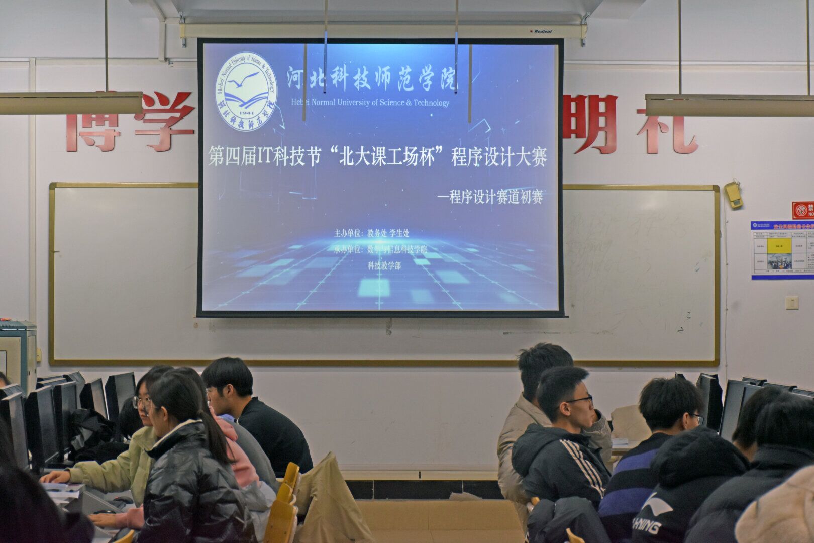 2023年11月25日下午2点30分,第四届IT科技节“北大课工场杯”程序设计大赛——程序设计赛道初赛在逸夫楼A903、A906、A1003、A1010专业机房正式举行,共有73个队伍219名同学参赛。本次比赛由科技教学部主要负责。比赛时长2个小时,比赛形式为上机编程和实时评测,比赛排名以解题数量进行排名(若解题数量相同,按所用时间以及算法复杂度排名)。每答对一套题目将会获得一个气球作为奖励。通过激烈角逐,共有30个参赛队伍成功进入决赛。